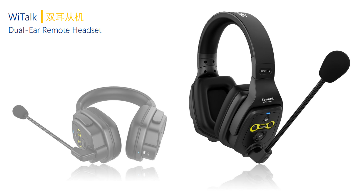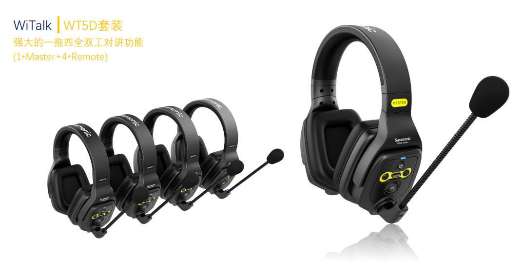 Saramonic WiTalk WT5D is a full-duplex wireless intercom headset system that provides two-way communication up to a range of 400 meters. It includes a main headset and four remote headsets, allowing up to 5 people to communicate at the same time. Thanks to its hands-free design, the WiTalk WT5D is ideal for applications where the team needs to get the most out of both hands, such as film production, sporting events, production crew communications and more.