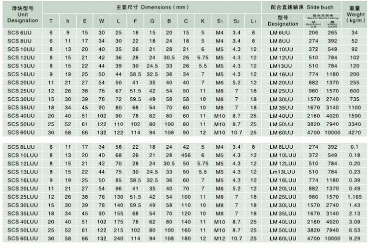 | product name: | Linear Slider Bearings | series: | SCS...LUU |
