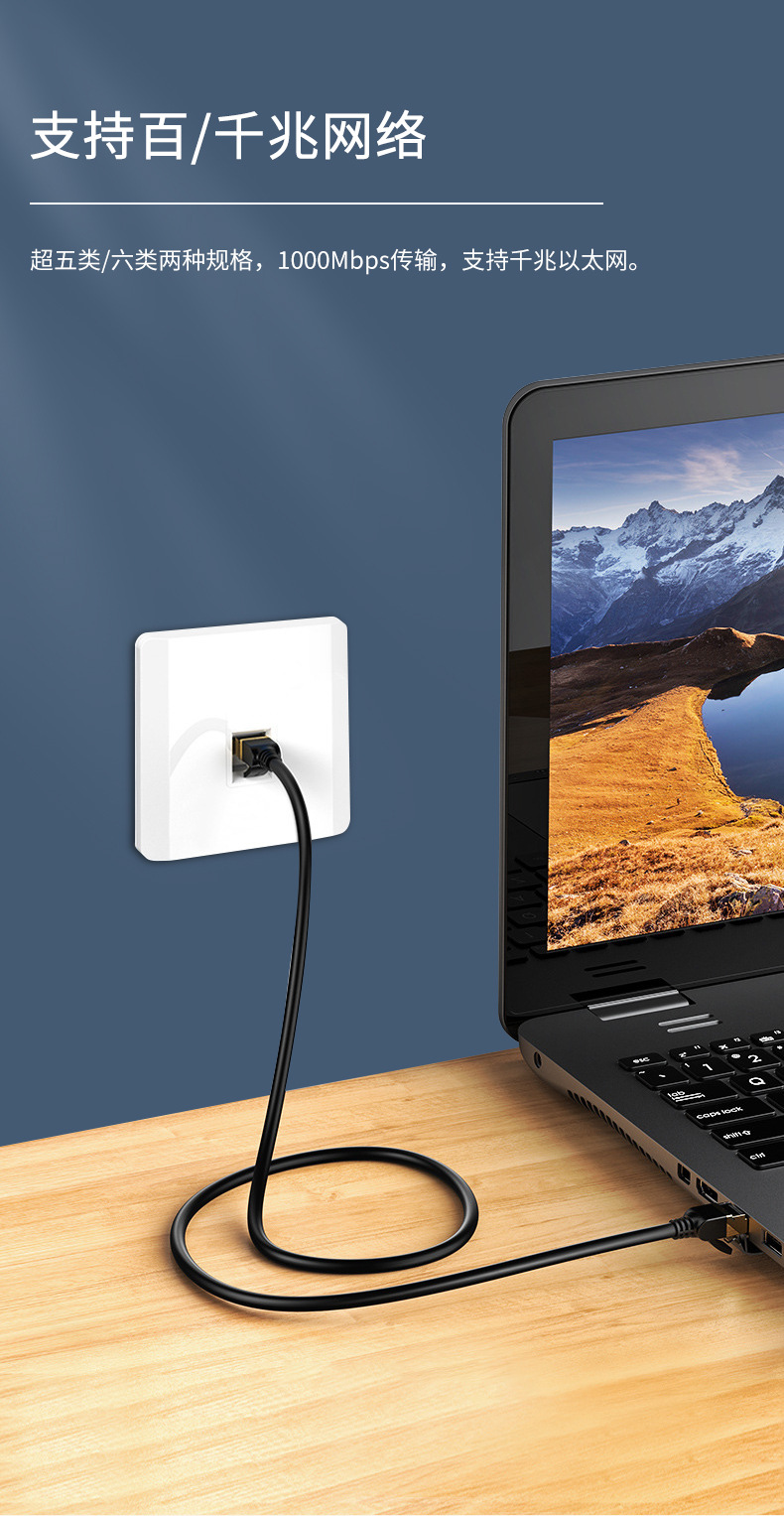 Cat5e/cat6 two specifications, 1000b95 transmission, support Gigabit Ethernet port