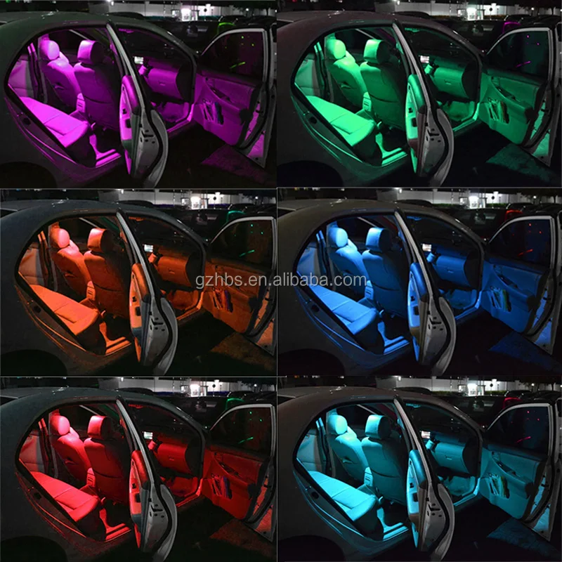 Car interior rgb led auto light, controlled multi color and flash modes controlled by remote control, Easy to use.