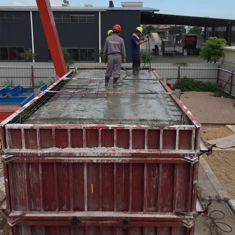 2. Production of concreteconcrete machinery. 3. AdjustmentForming Machine, and use a gantry crane and a hopper to lift the concrete and pour it into the machine until it is full. 4. Cover the molding machine with the lidQuick setting machine,andThen turn on the quick-setting machine to make the concrete harden quickly. 5. After 2-3 hours, a unit modular house is completed, pull the side panels of the forming machine, and adjust the inner chassis to shrink to separate the walls of the house. Use the gantry crane to lift the house and store it.
