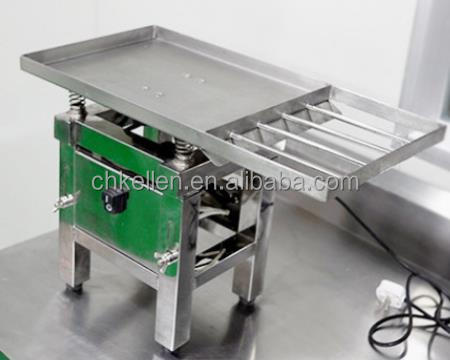 The vibrating table is mainly used for the chocolate depositing machine alone.As the melted chocolate is poured, the vibrator vibrates the liquid chocolate in the mold box, causing the air to vibrate out.