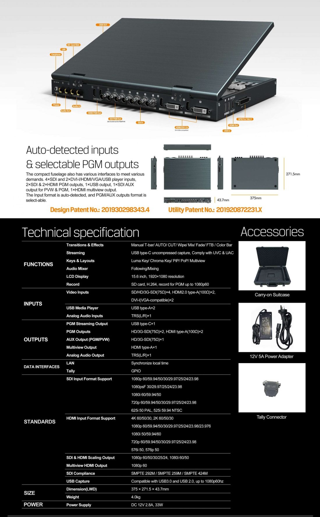 | Certification: | CE, RoHS | Record: | SD card, H.264, PGM recording up to 1080p60 |