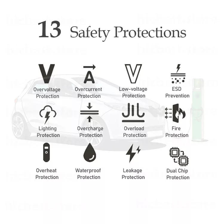 compatibility: Our EV chargers are compatible with most EVs and PHEVs and comply with GBT, IEC-62196 Type 2 or SAE J1772 standards. In addition, when there is not enough power supply, the current can also be adjusted within 5 levels (32A-16A-13A-10A-8A).
