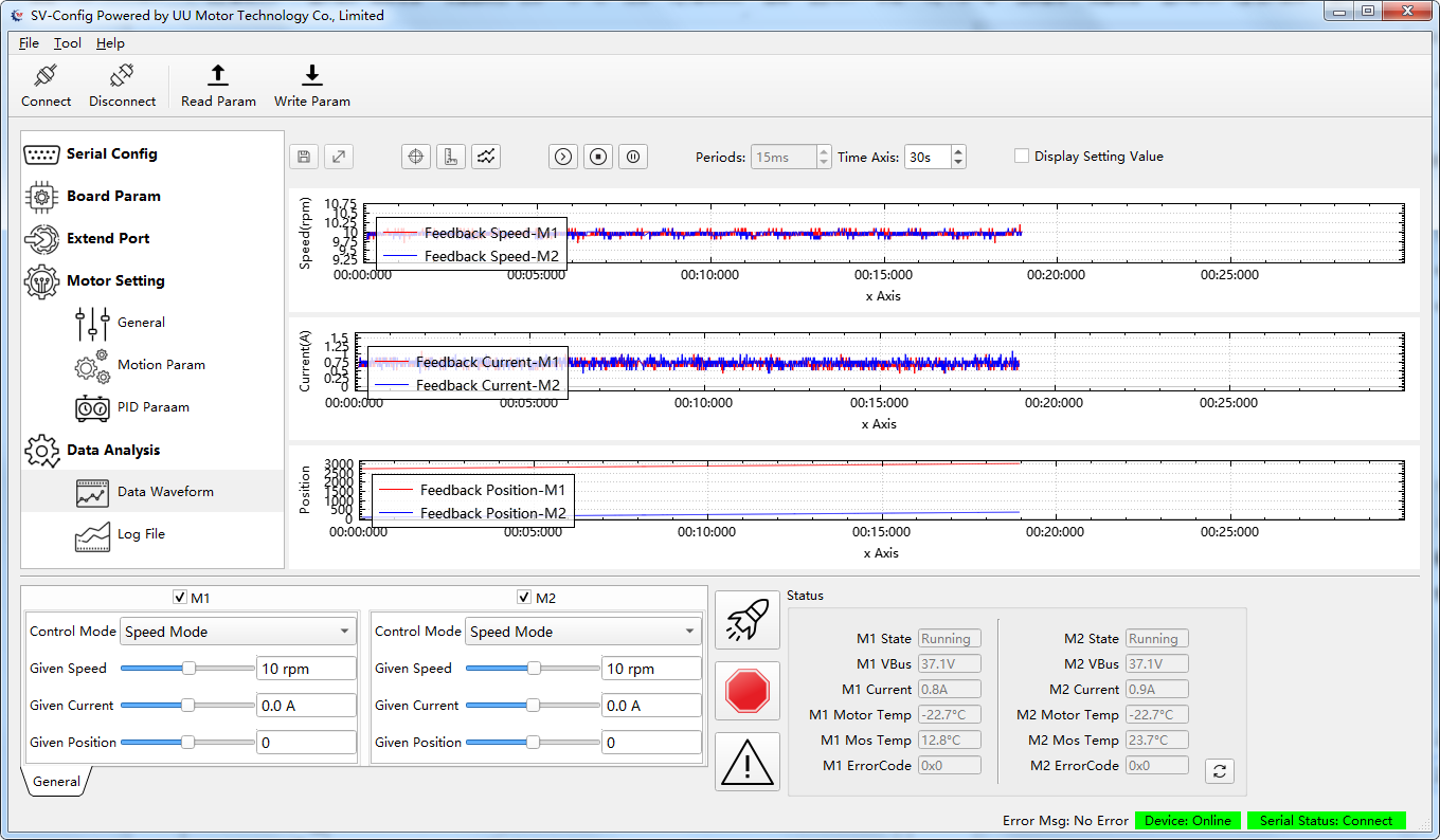 You can use such a Microzone connection driver to control the motor, it is very easy to connect and operate through our computer software, all data is easy to set.