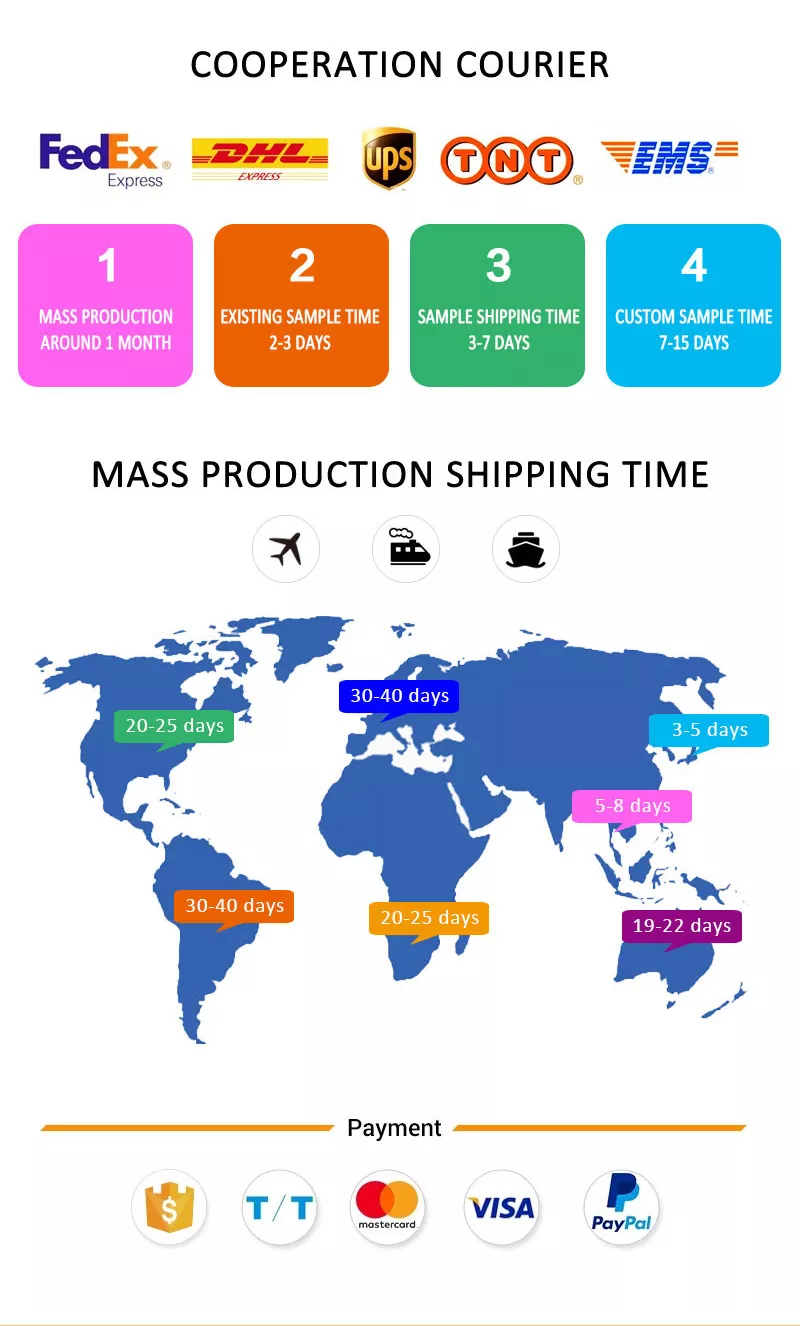 A3:Contact us and tell us your requirements. After we confirm your requirements, we can make samples for youwithin 2 weeks.