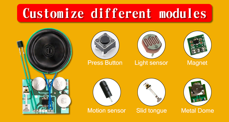 | model: | sound module | Components: | Circuit board + speaker + battery |