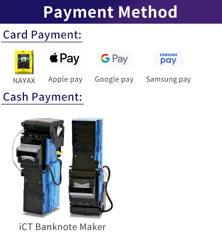 Payment methods | Scan code payment (support coin, credit card, Alibaba payment, WeChat payment, paypal, Stripe) |
