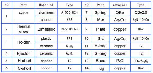 | Reset temperature: | 5~50℃ | Temperature plate: | bimetallic |