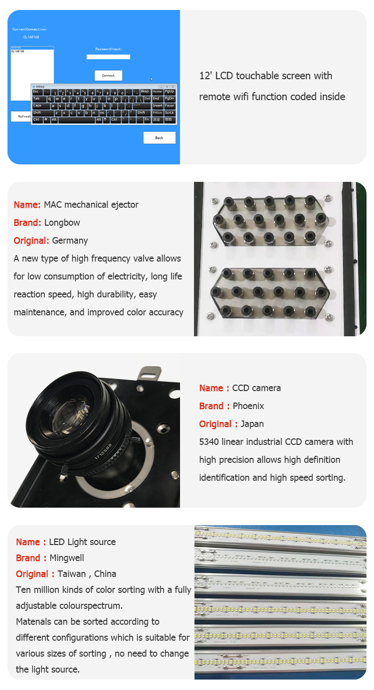 | payment terms: | L/C, Western Union, D/P, D/A, T/T, MoneyGram | Mechanical function: | Shape sorter, color sorter |