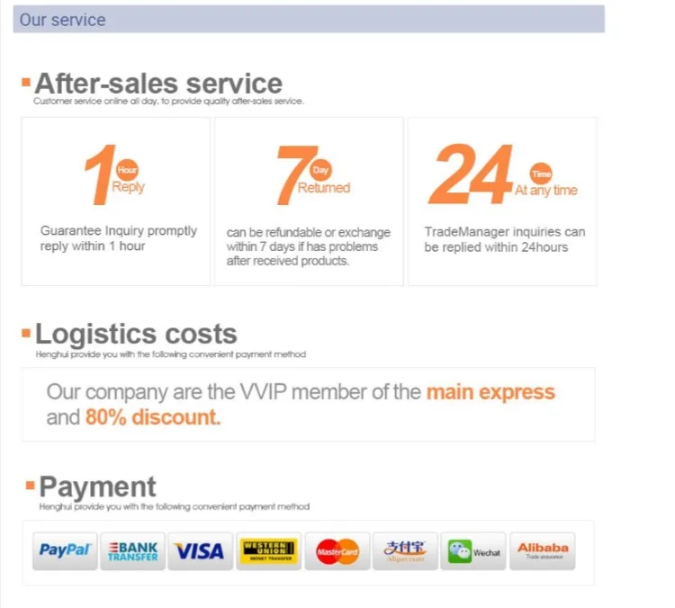 | Delivery Time | 3-7 working days after receiving your payment, mainly depend on the quantity |