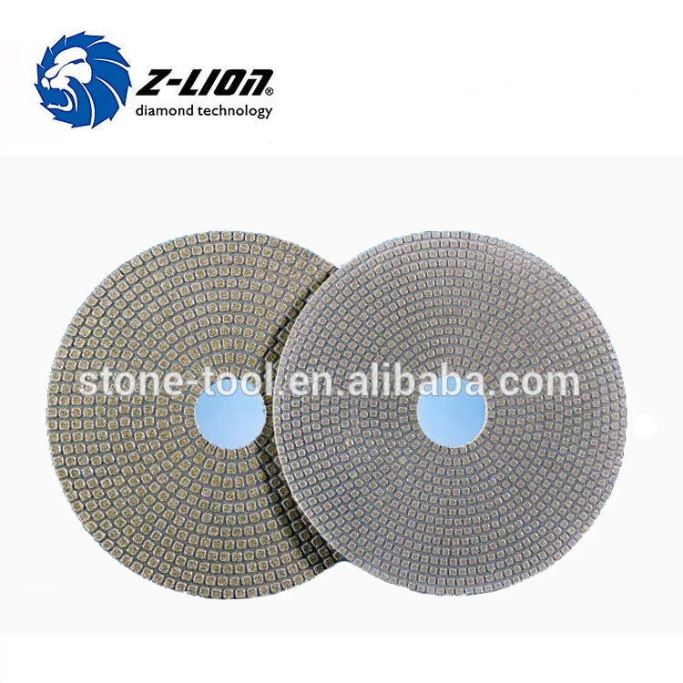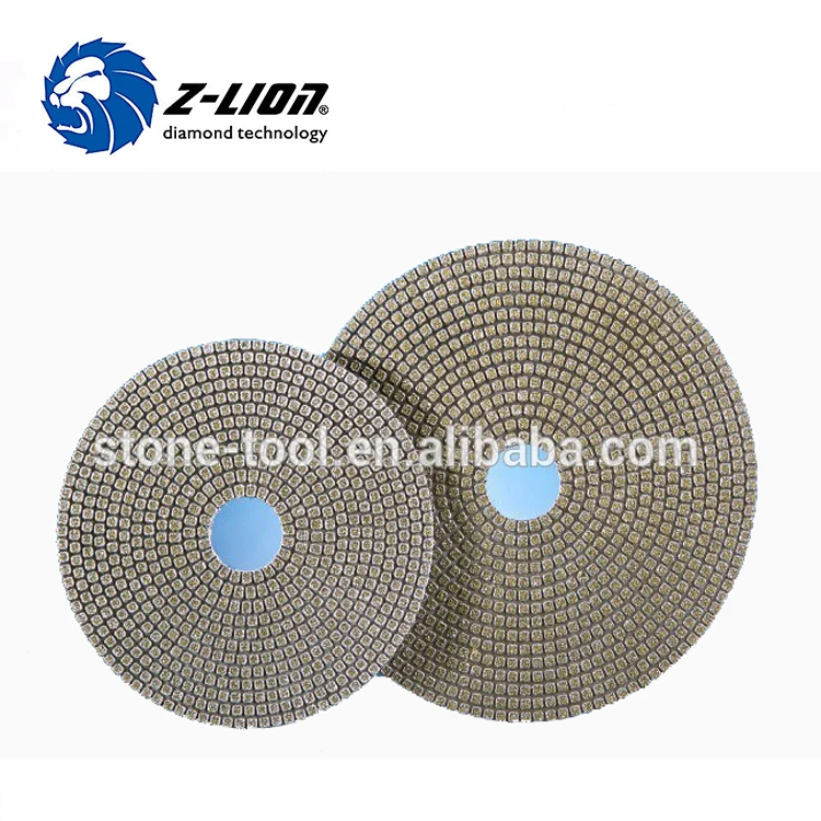 The electroplated diamond polishing pads offer the most aggressive removal rate you can imagine - they are much faster than an impregnated grinding disc because they have 100% diamond exposure. Diamond Electroplated Polishing Pads can be used wet or dry on a sander or grinder, and they operate well at any speed. The pads work on concrete, stone, tile, wood, swimming pool surfaces (the ONLY answer to quickly sanding PebbleTec), metals, even glass. Currently we offer 4" and 5" in diameters with 60 grit, 120 grit, 200 grit and 400 grit. Use regular dry or wet diamond polishing pads to finish polishing.
