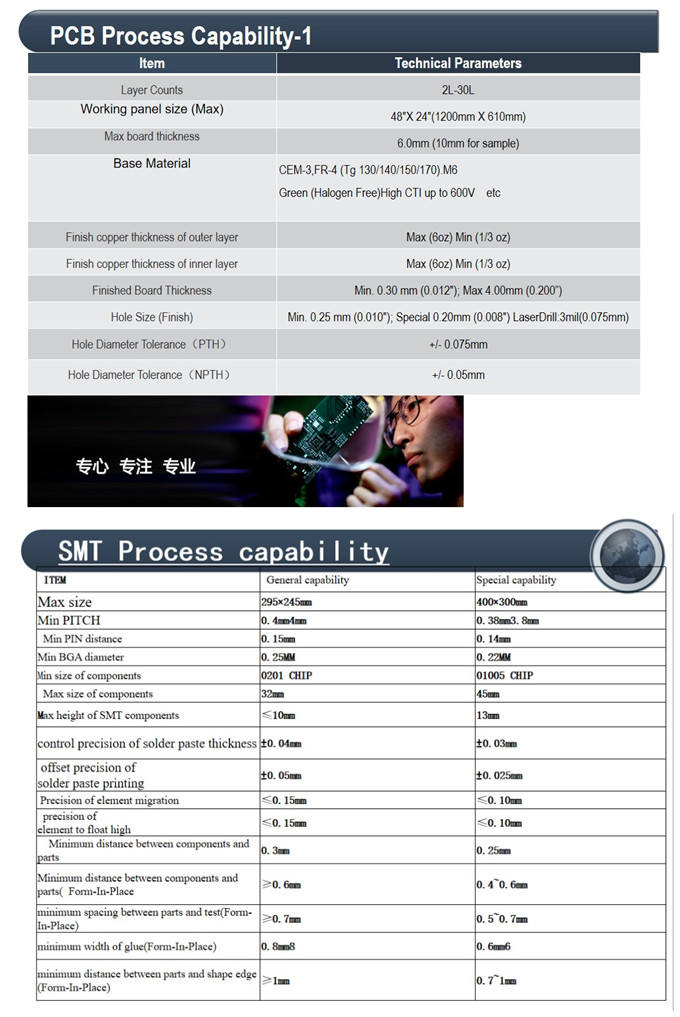 4-20 layers, board thickness 10mil-126mil (0.25mm-3.2mm) |