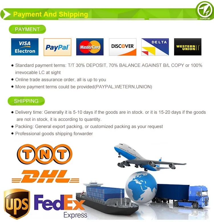 A: Payment<=3000USD, 100% in advance. Payment>=3000USD, 30% T/T in advance ,balance before shippment.
