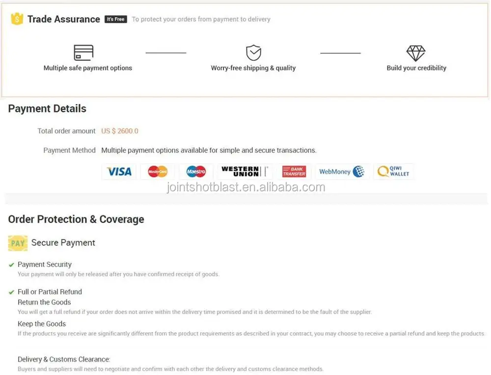 Option 1: Pay on Alibaba Trade Assurance with your credit card etc., which can 100% ensure your order security. There is a refund money service for the customer, which means if you can not receive the goods, or the bad quality you can apply for that.