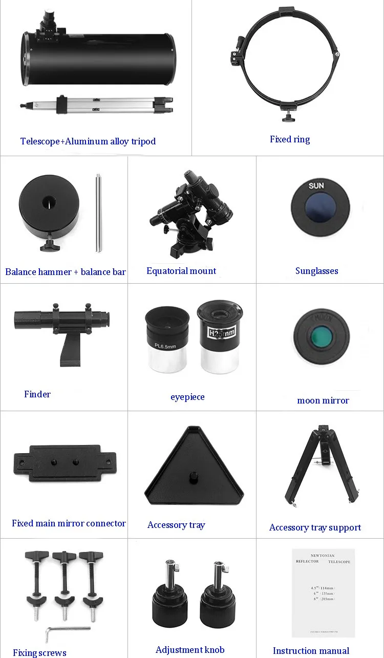 | Tripod: | Adjustable Aluminum Tripod; | Accessories: | Moon Filter,Sun Filter; |