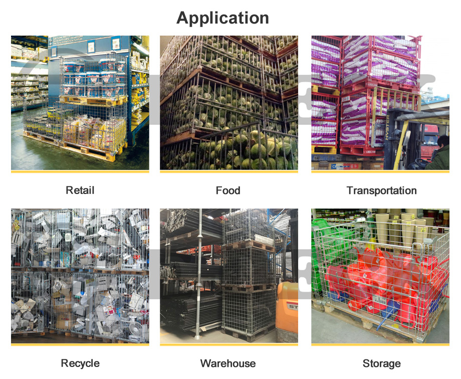 Metal Storage Industrial Stackable Foldable European Standard Logistics Rigid Bottomless Wire Mesh Pallet Cage