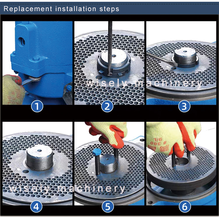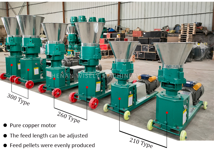 Feed pellet machine processed feed pellets are smooth, uniform and moderate in hardness. Particle size can be achieved by changing different grinding discs.