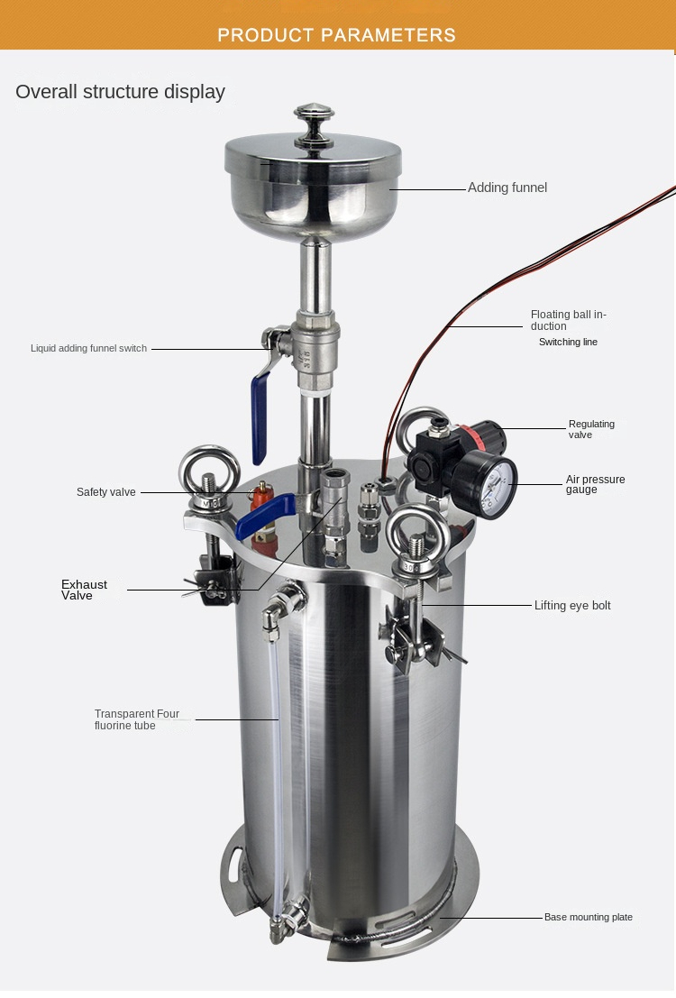 Liquid display stainless steel pressure barrel dispensing machine pressure tank storage barrel 1l-100l supports customization