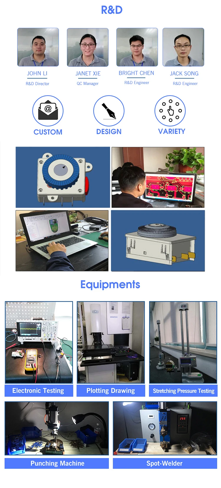 A2:We have own R&D team that involves 2 experienced structural engineers, 1 software engineer and 2 circuit engineers.
