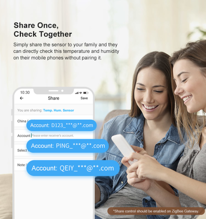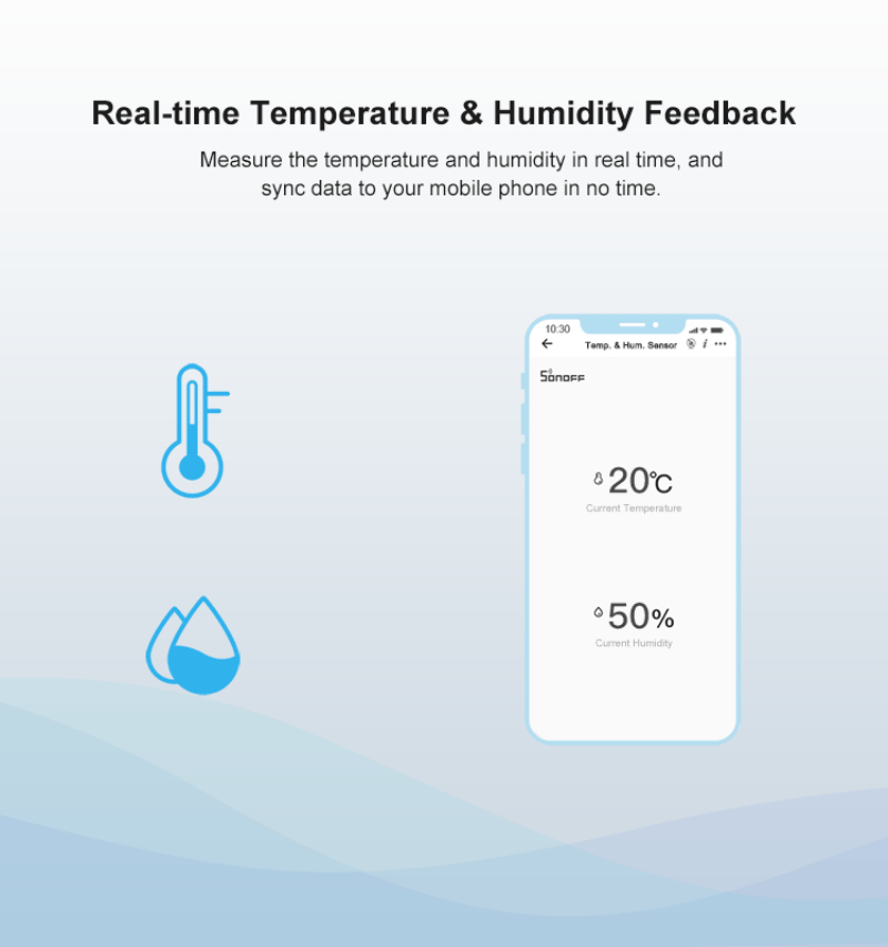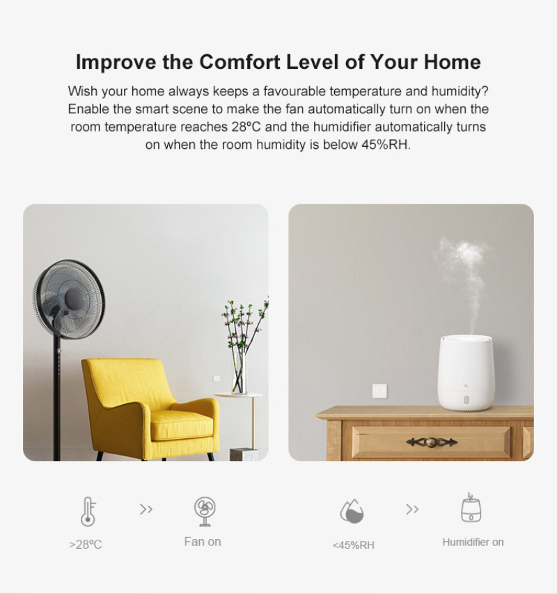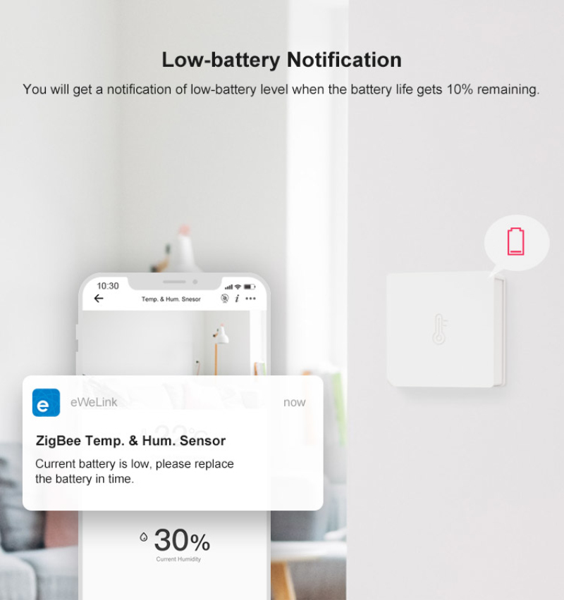 SONOFF SNZB-02 is a ZigBee temperature and humidity sensor, which can seamlessly cooperate with SONOFF ZigBee Bridge to track the temperature and humidity changes in the home, and all real-time readings can be viewed on the eWeLink APP. Even better, you can set a condition in the smart scene to turn on/off the fan when the temperature reaches the limit, or start the dehumidifier in the room when the humidity is too high, helping to prevent mold growth and allergens . You can set smart scenes to trigger alerts by events such as high/low temperature, high/low humidity conditions, and more. The device sharing function allows your children, family members and even neighbors to know the environmental conditions in your home through mobile phones. The camera feature on the sensor lets you know what's going on in your home. It gives you time to act if there is a fire hazard. It's a battery-operated sensor that can be placed anywhere in your home to monitor room temperature and humidity. No tools are required to install, just stick the sensor on the wall or surface of your equipment and watch it work for you!