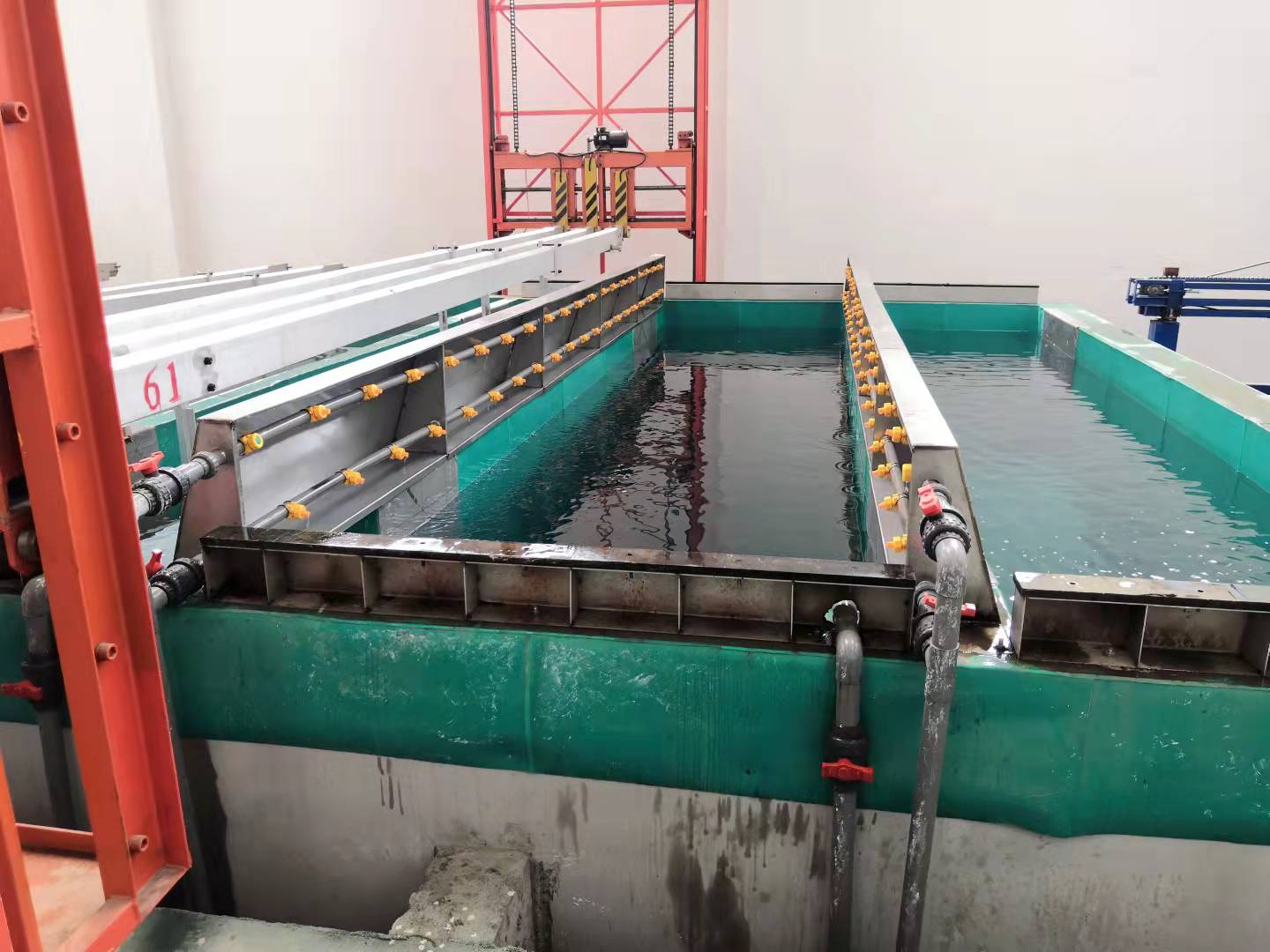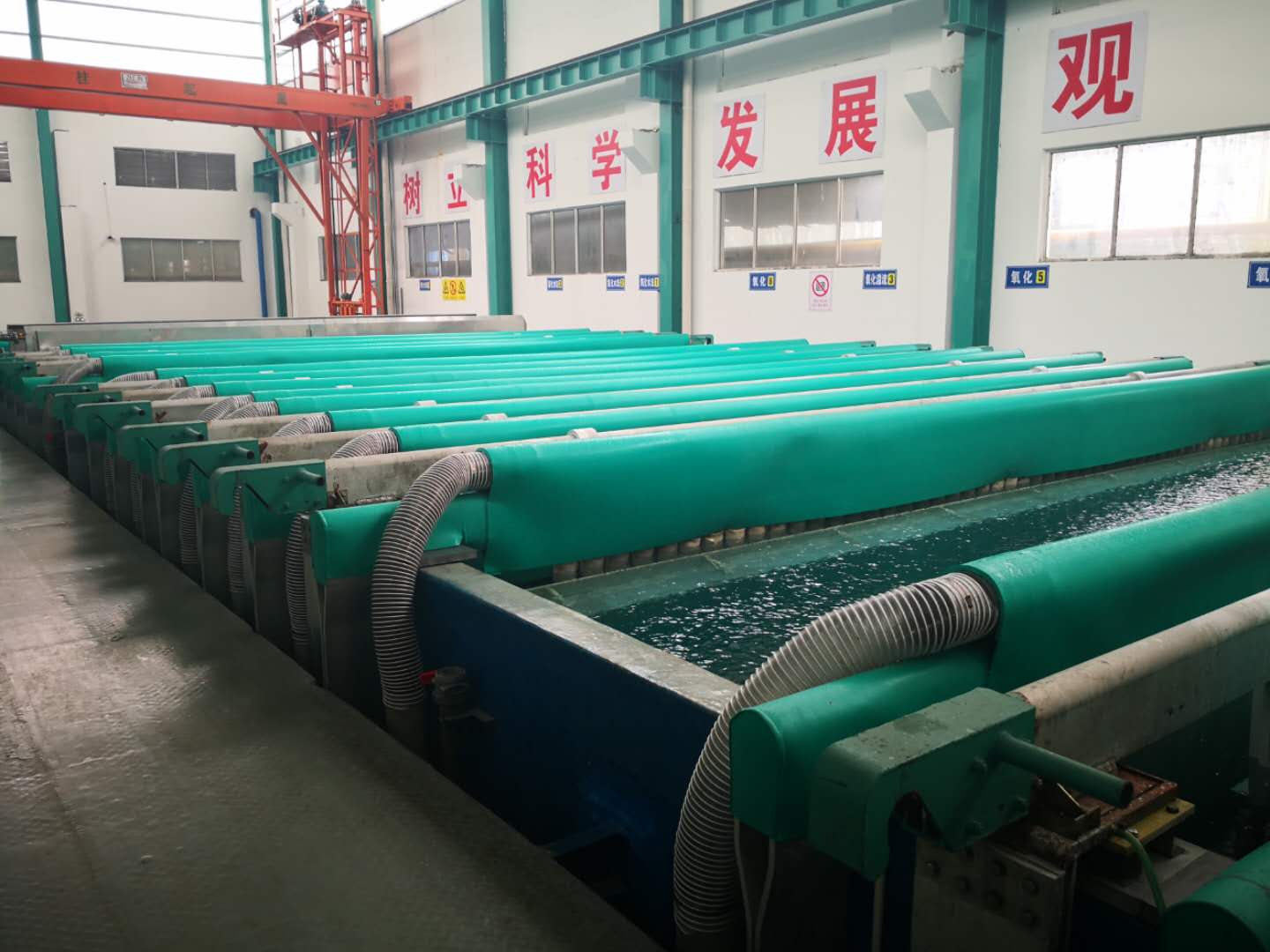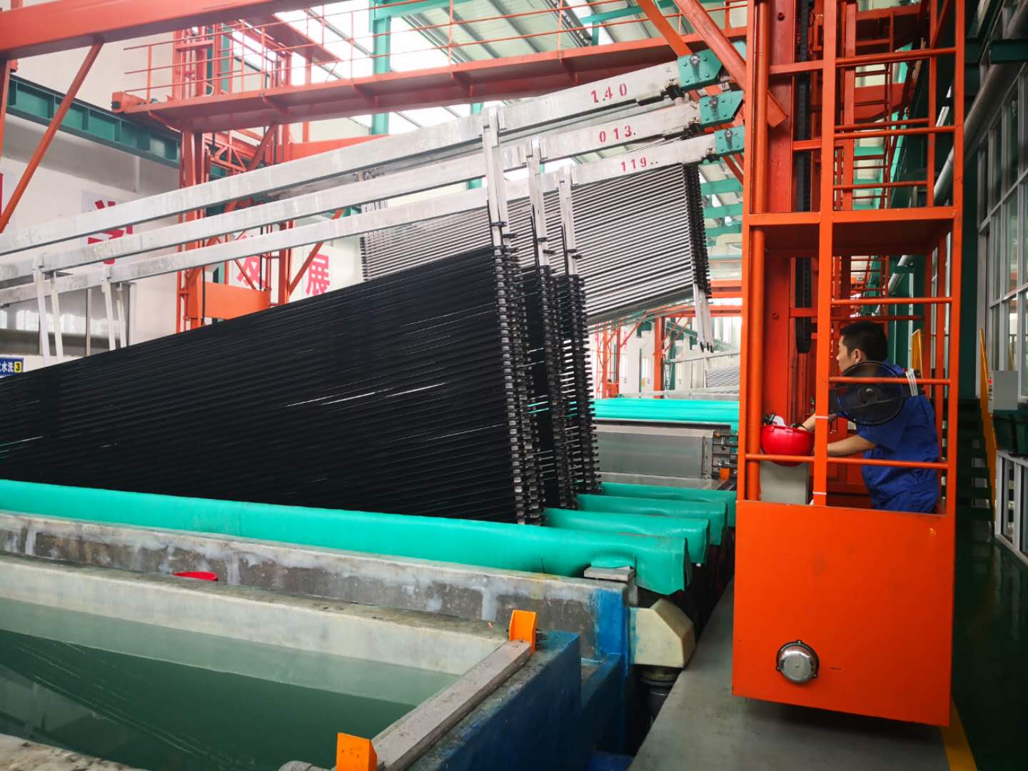 Large capacity anodizing machine for aluminum extrusion profiles working in customer factory: