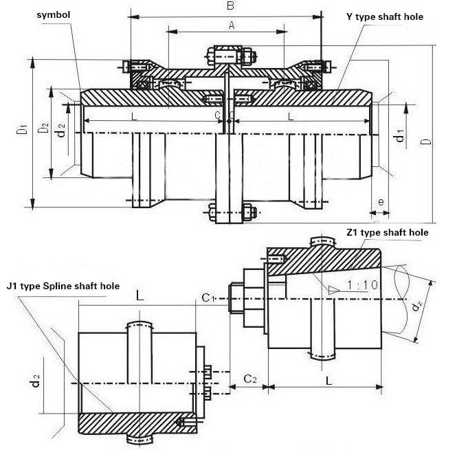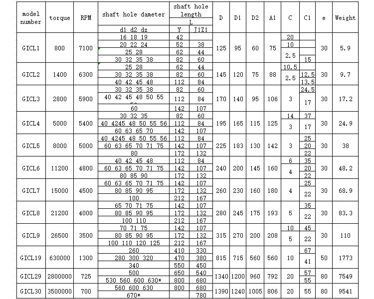 GICL drum gear coupling consists of a half coupling with the same number of teeth, an inner ring and an outer flange. There are two types of external teeth: straight teeth and drum teeth. The tooth is the outer spherical surface of the tooth.