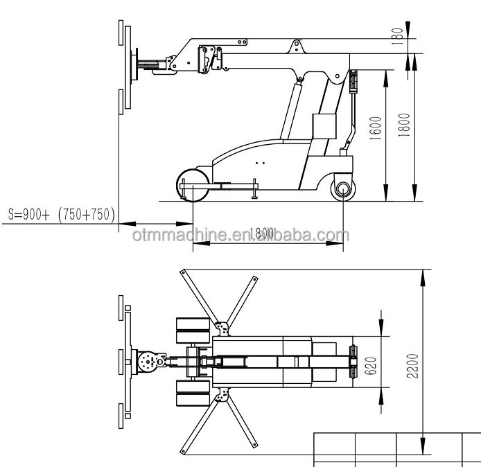| Power Systems: | electric + battery and remote | Drive motor/Lift motor: | 24V/750W, mobile glass robot lifting device |