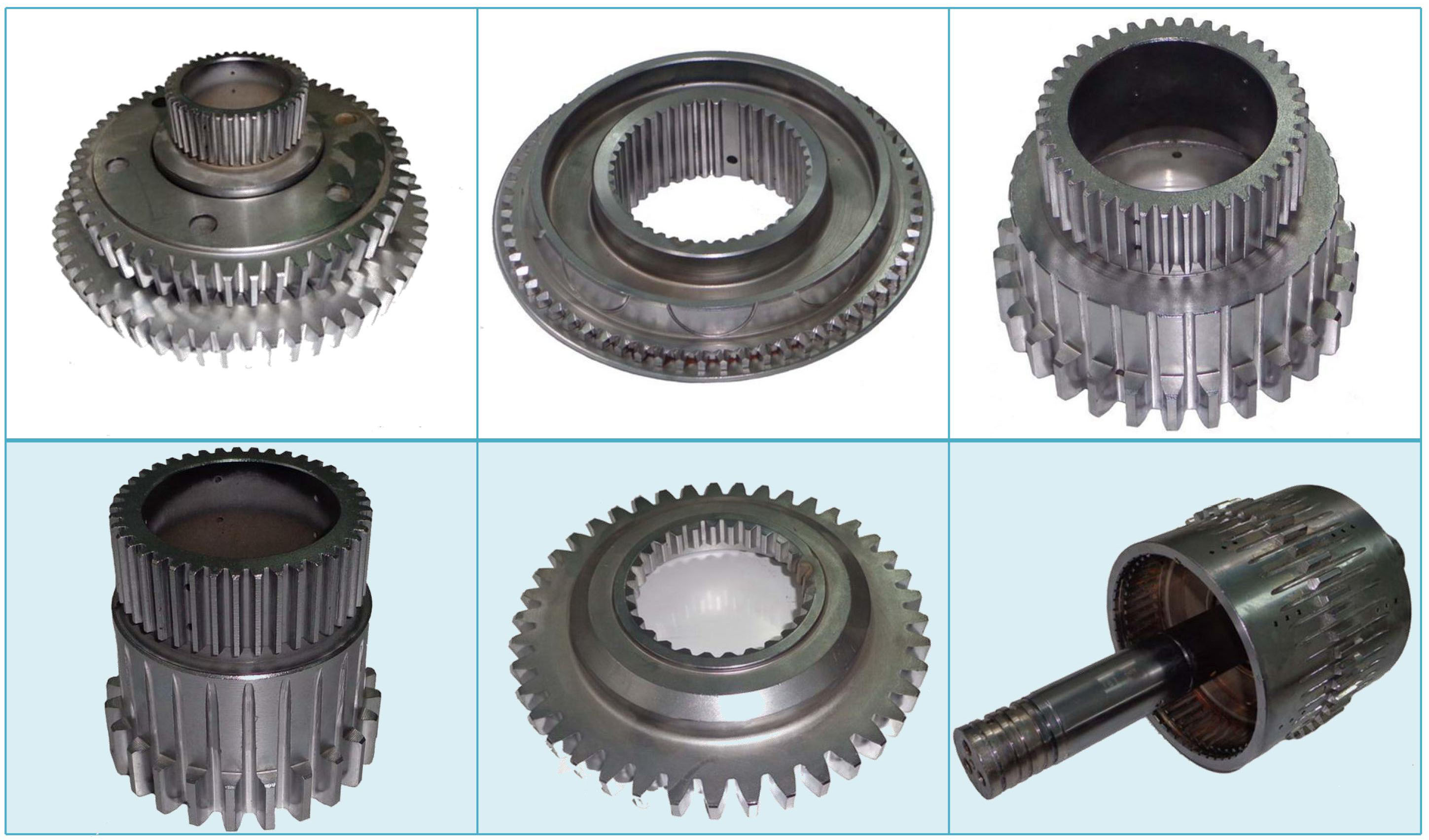 | Spur gears, helical gears, internal gears, ring gears, spur/spiral bevel gears, hypoid gears, crown wheels & pinion gears, gear shafts, worm gears & worm shafts, spline shafts & bushings, etc. | | | |