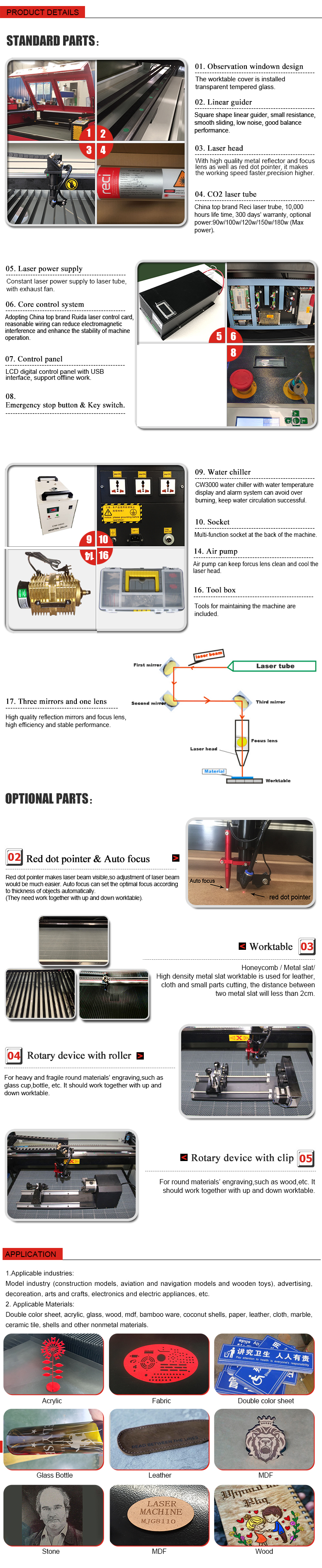 | Applicable materials: | Acrylic, crystal, glass, leather, MDF, paper, plastic, plexiglass, plywood, rubber, stone, wood, marble, granite, tombstone, fabric, ceramics, etc. | CNC or not: | Yes |