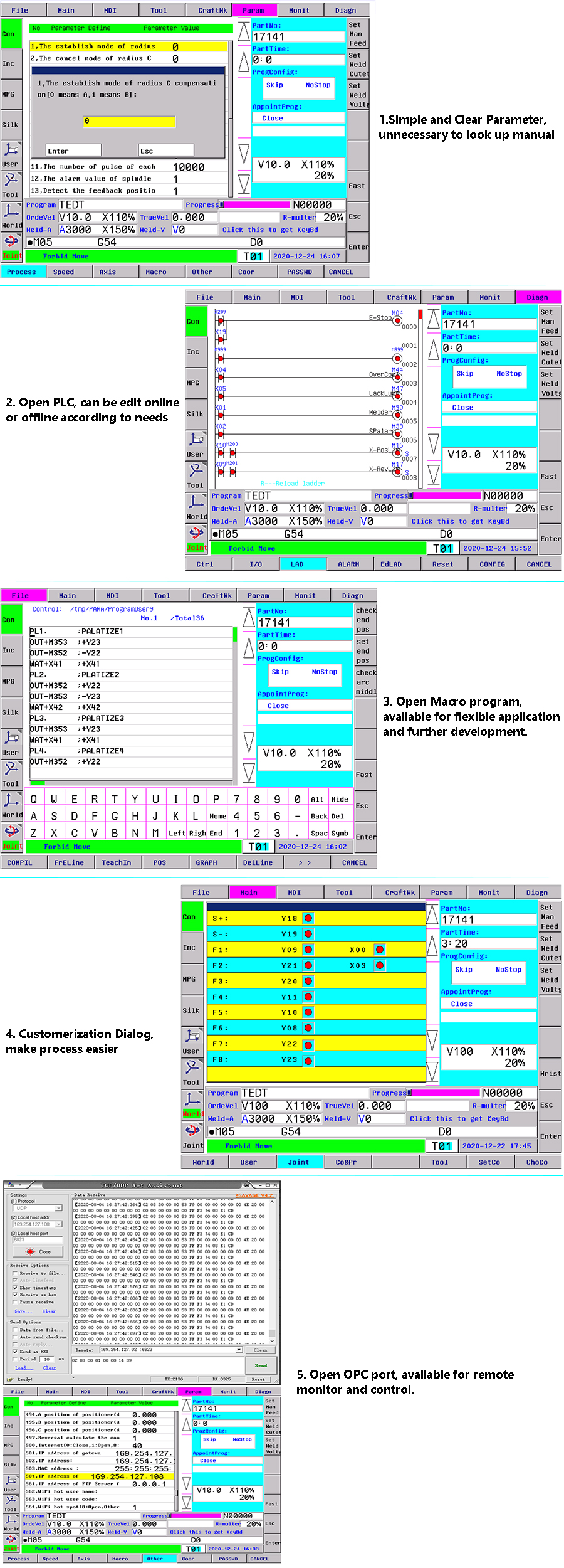 Alarm information: | Emergency, driving, maintenance, arcing and coordinate error | Compute values at two locations: | PX***=PT***-PT*** | |