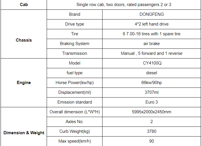 | Chassis brand: | Dongfeng Foton Howo FAW | Emission Standards: | 4 euros |