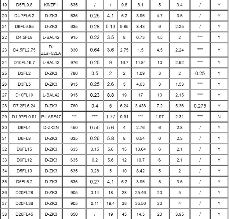 Glass Quality | nd | ±0.001 | ±0.0005 | Melt controlled |