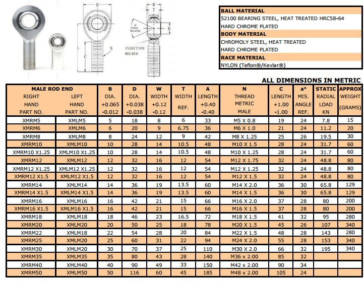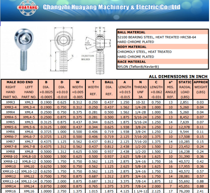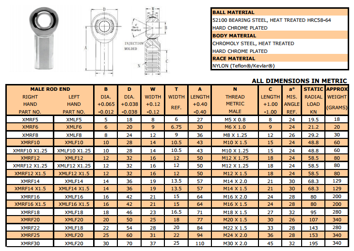 | Body material: | Chrome Molybdenum Steel, Hot | Ball material: | 52100 Bearing steel, heat treated |