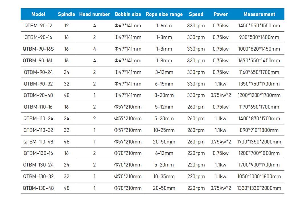 This machine is suitable for producing 8,16-strand braided ropes of different sizes and materials, which are widely used in shoelaces, fishing lines, skipping ropes, pet ropes, bungee ropes, etc. The machine is equipped with an automatic stop device for yarn breakage and a frequency converter, which has the characteristics of high efficiency, safety, small footprint, and convenient operation.