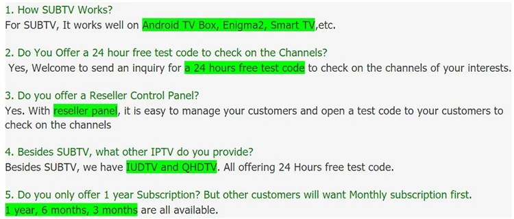 | Package Type: | one piece one code; | SUBTV IPTV Subscription: | 1 Year; |