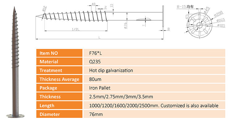 The anchor screw system is a modern foundation system that is installed using a drill rig, making it the most efficient and cost-effective foundation solution. It can be widely used in different soil conditions. Grounding screws can be used in a variety of applications, such as solar energy systems; timer frame structures; advertising and traffic systems; urban landscaping construction; flag poles, etc.