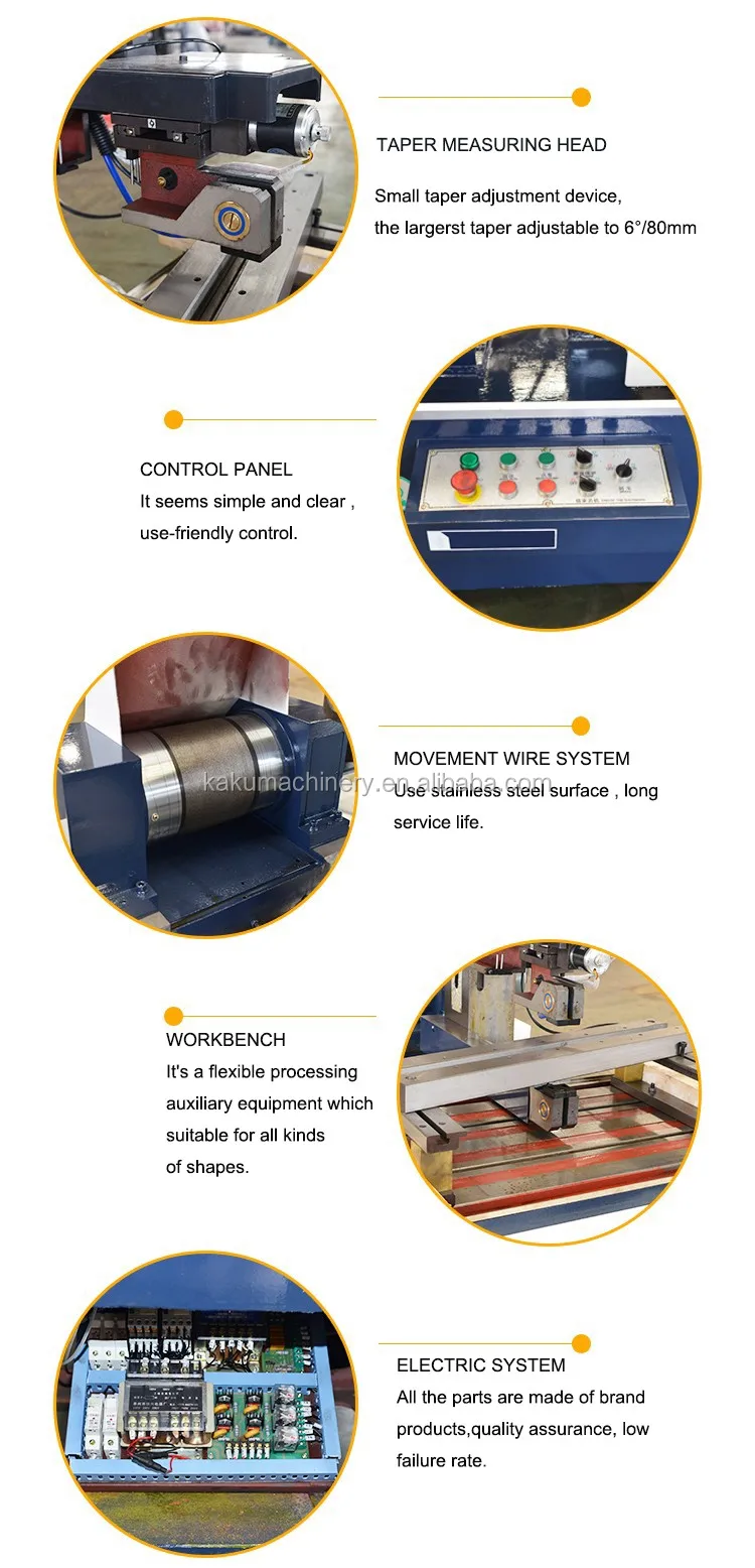 The upper part of the bed is equipped with worktable parts, wire-frame parts and wire-carrying parts. The lower part of the bed is equipped with working fluid tank, electrical parts of machine tools, and parts of bed parts are semi-finished. Enclosed enclosure, both safe and conducive to improving the operating environment.
