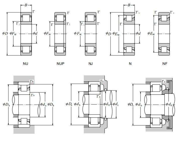 type | Single row (N, NU, NJ, NUP, NF, RN, NCL, NCF) Double row (NN, NNU) Four rows (FC, FCD) |