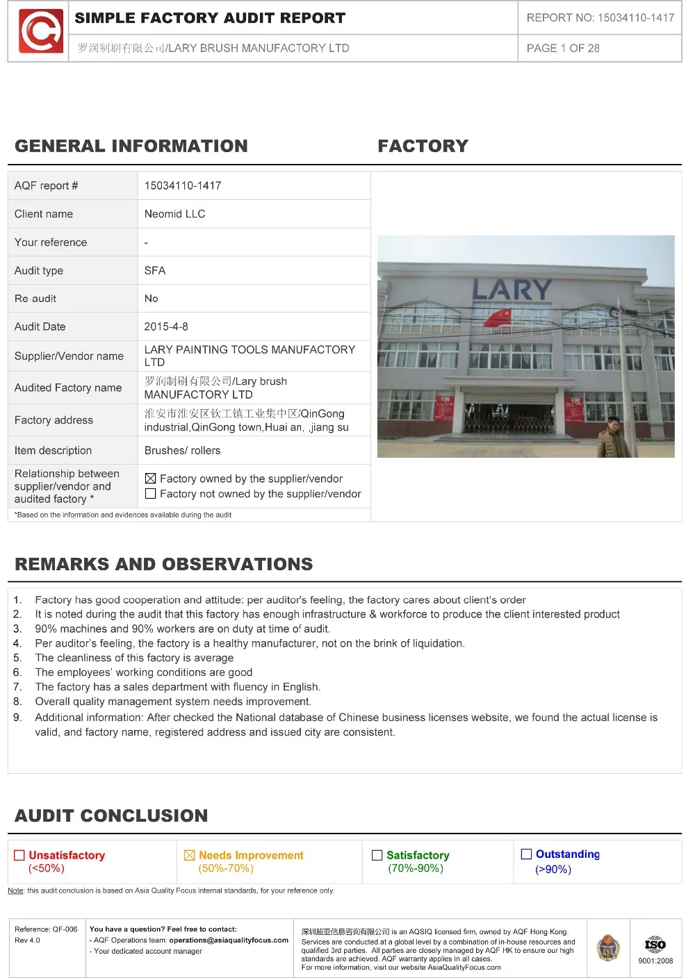 Founded in 1994 at a small disused school. LARY has developed into a 25,000-square-meter modern factory with 150 workers. With a history of more than 20 years, our factory can produce 20 million paint tools and 500 tons of raw materials per year. And our annual turnover has been up to 20 million USD