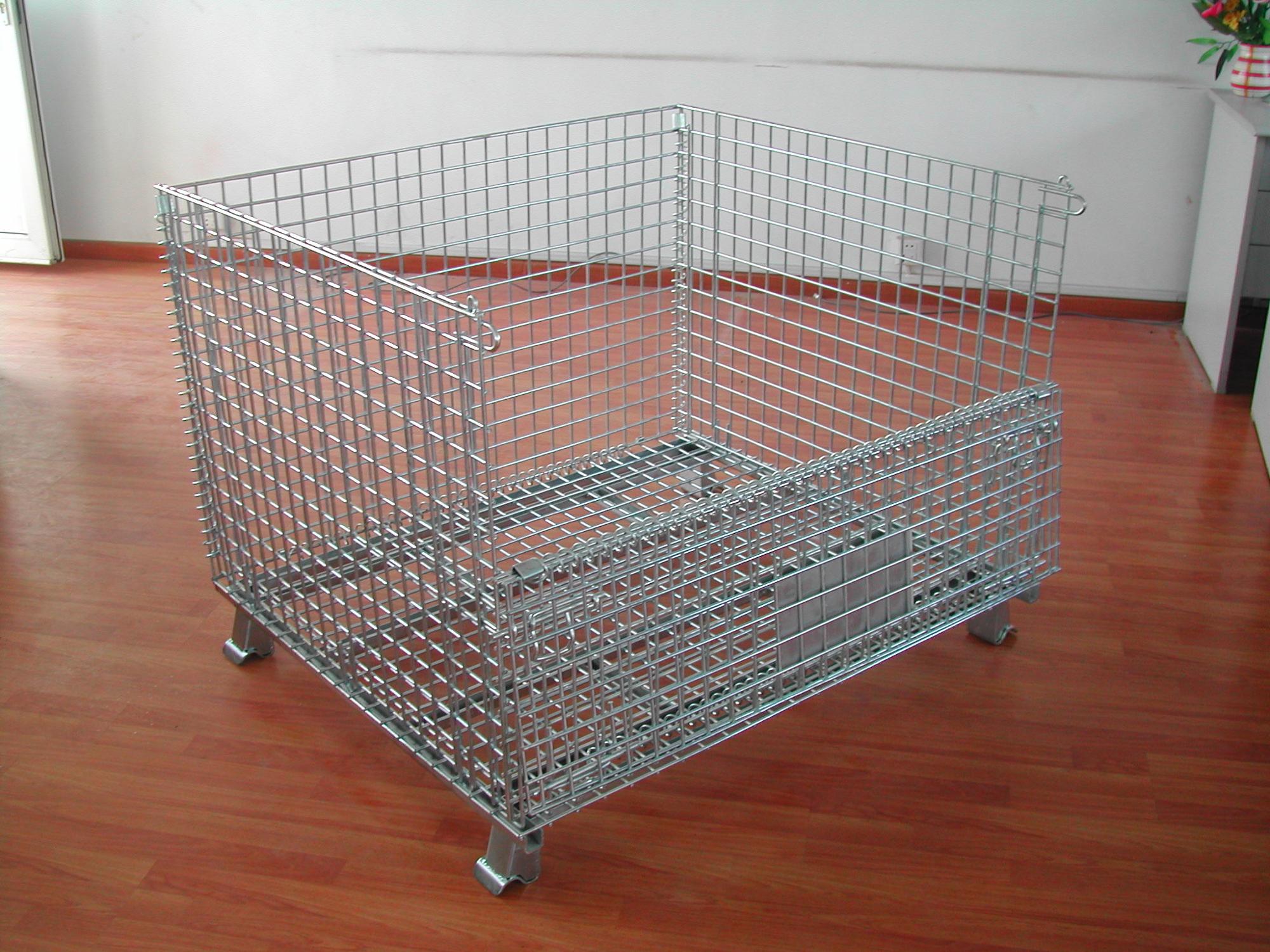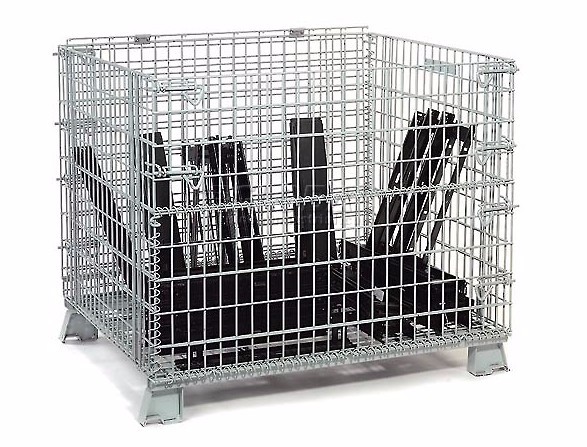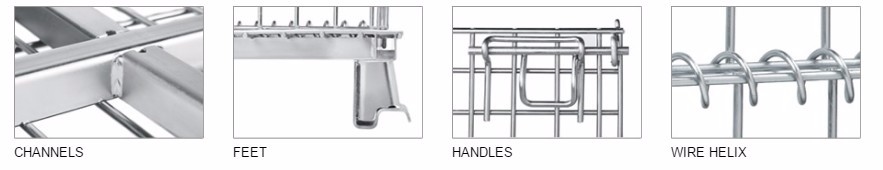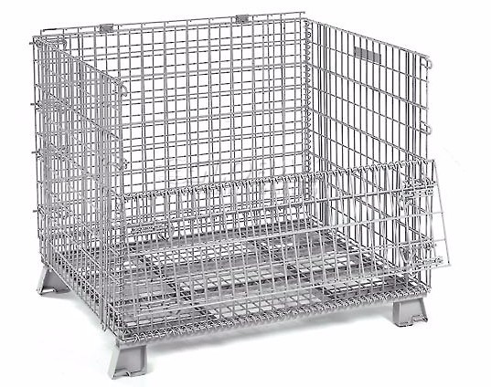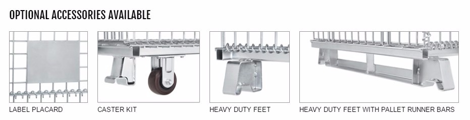 Open mesh construction provides excellent visibility, easy stock control and eliminates the buildup of dust and grime. This one-piece heavy duty container features wire mesh arc welded to a channel steel base. The sides and corners are heavily reinforced. Notched front stacking legs allow forklift or pallet truck handling. Drop doors allow access when stacked. The durable powder-coat finish resists rust and corrosion. Set up in seconds! Add hinged lid and padlock for security.