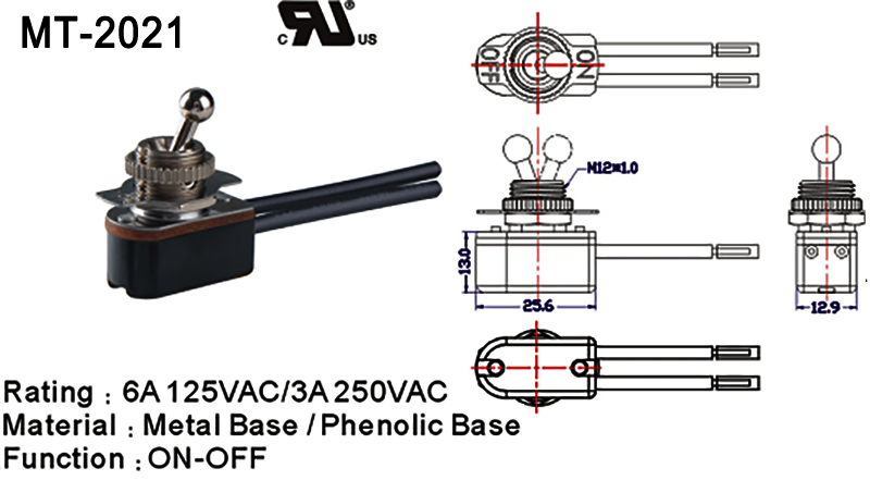 MT-2021 Rating | 6A 125VAC/ 3A 250VAC |