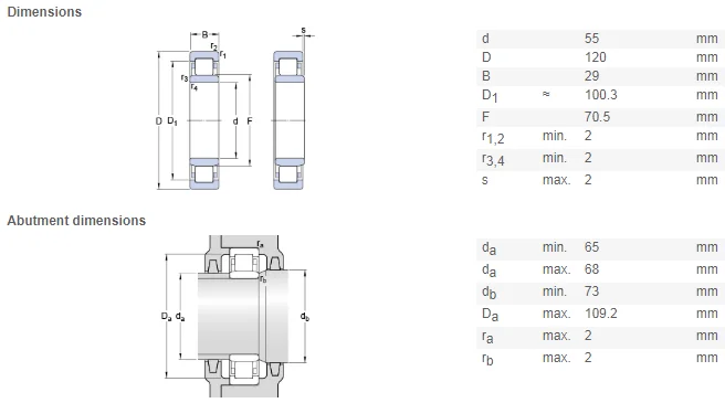 The outer ring has two integral flanges and the inner ring one integral flange. The bearings are therefore suitable for the axial location of a shaft in one direction.