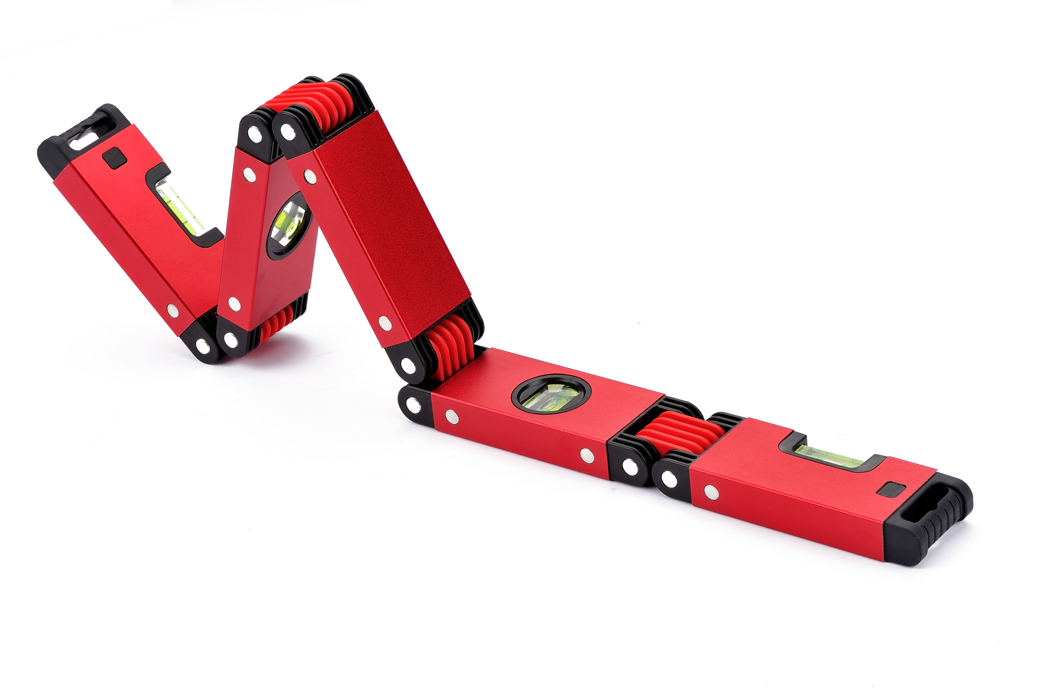 【Folding Level】This articulated level can be folded into any angle to go around obstacles and measure multiple angles at the same time, such as pipes, stairs and corners, which can be folded or extended for use. 【3 Measurement Angles】Features 4 clear and intuitive green acrylic vials, providing horizontal, plumb and 45 degree readings for precise measurement and calibration, large top view vial window for easy reading from multiple angles. 【Easy to Store and Carry】The length after lengthening is 28 inches (71.5 cm), and the size after folding is only 5.7 x 4.3 x 1.97 inches (14.5 * 11 * 5 cm), compact size fits any toolbox or backpack. 2 practical hanging holes, free your hands. Easy to store and save space, it's a great addition to your travel toolbox. 【WIDE APPLICATION】Designed for decoration, home improvement, cabinet installation, DIY tasks, and any simple leveling work in a home or office environment. Fast and accurate level measurement will save you valuable time.