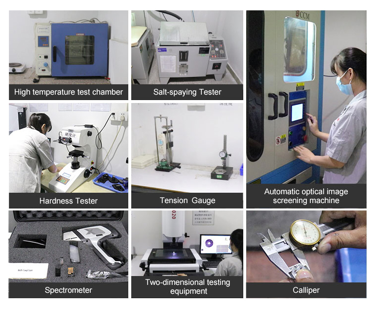 Our company has all kinds of advanced high-precision CNC machine tools, automatic lathes, CNC milling machines, grinding machines, drilling machines, tapping machines, tapping machines and other processing equipment. We can produce according to customers' requirements. At the same time, our factory has projectors, salt spray testing machines, accelerometers, center height meters, torque testing machines, film thickness testing machines, spectrometers and other testing equipment, as well as a high-quality technical team to meet the needs of each customer . client. We continue to move forward with the tenet of "quality-oriented, reputation-based development". With our excellent product quality, good service and very