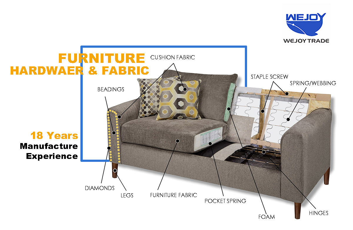 Shaoxing Wejoy Trading Co., Ltd. was founded in 2000 in Shaoxing, Zhejiang by Managing Director Jay Tong. The company mainly produces velvet, linen, artificial leather and other decorative fabrics. In 2004, the product range expanded to furniture hardware, and a factory was established in Foshan, Guangdong. With years of hard work and customers' trust, the company has become a leading supplier of furniture and bedding, with operations in many countries in Europe, North and South America, Africa, the Middle East and Southeast Asia.