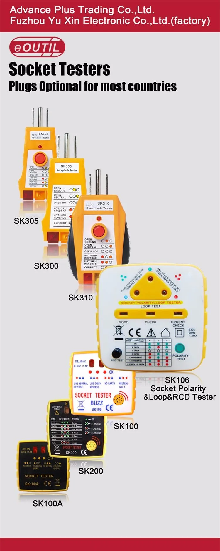Socket Polarity & Loop & RCD Tester&Wiring Test with EU, UK and Australia Plug