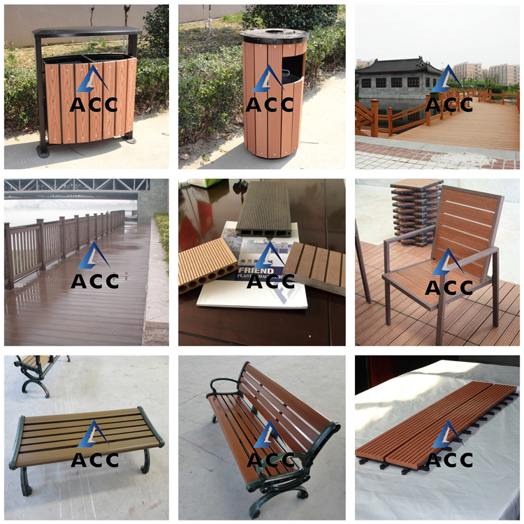 The wood-plastic wood-plastic composite profile extruder produced by our company integrates domestic and foreign technologies, and has the characteristics of high degree of automation, stable performance, large output and high efficiency. The most professional production of various indoor and outdoor WPC profiles by changing different moulds---outdoor applications: WPC hollow floor, WPC solid floor, WPC beam/joist/keel, WPC wall panel, WPC bench/ Chairs, WPC fences/balustrades, columns/columns, WPC pavilions, WPC roof profiles, etc. Indoor applications: door and window profiles, furniture decoration profiles, foam profiles, etc.