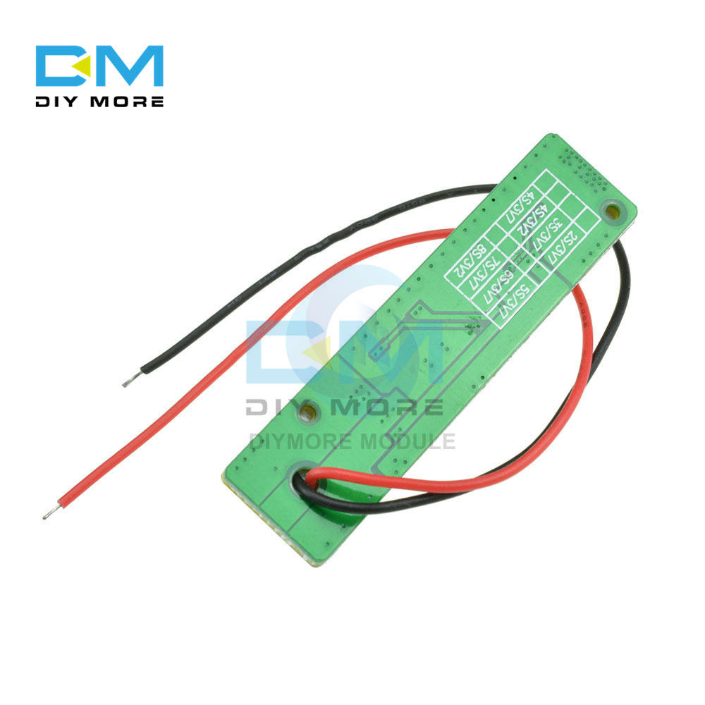 Specification:Type: 3.7V 1S lithium battery, 2S lithium battery, 3S lithium battery, 4S lithium battery, 5S lithium battery, 6S lithium battery, 7S lithium battery, 12V lead-acid battery (12V car battery) Material: PCB board size: 40x15mm (black ) ) 60x15mm (white) Cable length: 120MM Color: black/whitedescribe:Lithium-ion battery power display parameters: (2% error should be acceptable) 1. Battery voltage > N*3.2V, 1 LED lights up (Note: N = number of battery cells) 2. Battery voltage > N*3.4V , 2 LED lights on 3. Battery voltage>N*3.6V, 3 LED lights on 4. Battery voltage>N*3.8V, 4 LED lights on 12V lead-acid battery power display range: (4S lithium iron phosphate battery is acceptable) 1 . The battery voltage exceeds 11V, 1 LED light is on 2. The battery voltage exceeds 11.6V, 2 LED lights are on 3. The battery voltage exceeds 12.3V, 3 LED lights are on 4. The battery voltage is more than 13V, 4 LED lights are on 3.7 V lithium battery, Fully charged 4.2V 2S lithium battery 7.4V, fully charged 8.4V 3S lithium battery 12V, fully charged 12.6V 4S lithium battery, fully charged 16.8V 5S lithium battery, fully charged 21V 6S lithium battery, fully charged 25.2V 7S lithium battery, Fully charged 29.4V 12V lead-acid battery, 12V car batteryinstruct:1. Connect the positive and negative poles of the display panel to the positive and negative poles of the battery under test. Press the red button with your finger, the LED light will light up. Display real-time battery level. 2. Release your finger, the LED light will turn off after 3-5 seconds, and it will not consume power when it is still. 3. It has the function of reverse connection, even if the positive and negative poles are reversed, it will not burn, just adjust it.Tip:1. A total of 5 small lights, showing the power, suitable for inverter lithium battery power prompt 2.3.7V models have 1 red power indicator light, 4 green battery lights; others have 1 red power light indicator, 4 blue battery lightPackage Included:1* battery capacity indicator module