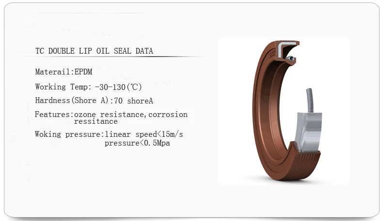 | Product name: | Doule Lip FKM Rubber Oil Seals with Spring; | Material: | NBR, NR, SBR, CR, EPDM, FKM, Silicone, etc.; |